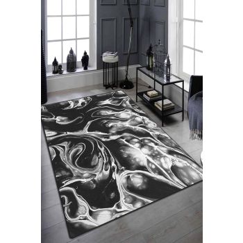 Tapis Raure 80x140cm Velours Motif Florale Bleu et Blanc